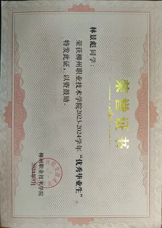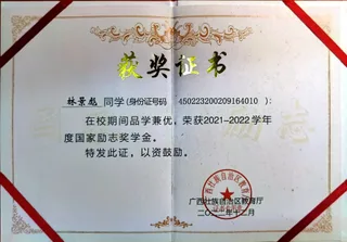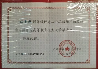 广西壮族自治区普通高等教育优秀大学毕业生证书